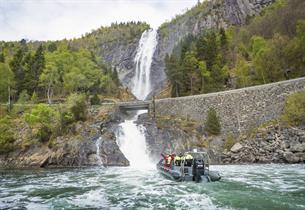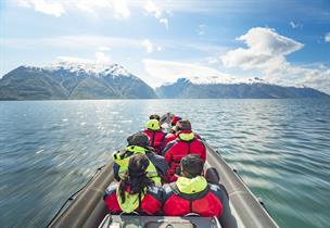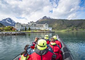 Balestrand er omgitt av fantastisk natur og spennande historiske stadar. Opplev Balestrand frå rib-båt.