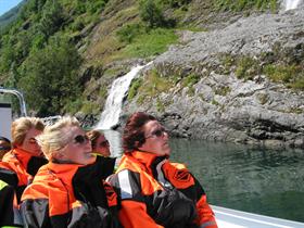 Deretter møter en på kaien til Fjordsafari kl 11:50 for påkledning av utstyr og registrering. Det er max 12 personer pr RIB-båt og guide i hver båt så dette kan lett oppfattes som en privat tur. Det stoppes flere plasser på turen og guiden forteller spennende lokal historie fra fjordene. Det er også stor muligheter for at du får se vilt liv som sel, nise eller ørn i sitt rette element. På denne safarien går turen ut Aurlands fjorden og inn Nærøyfjorden.