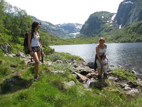 Enkel fottur mellom stølar og vatn.