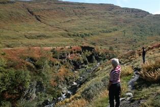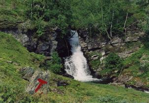 Frå Heggdalen er det nokså bratt opp til Heggdalsvatnet, der stien tidvis går heilt ute på kanten mot elvegjelet.