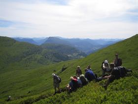 Siste stykket går stien innunder nokre høge hamrar før du er oppe ved osen på Heggdalsvatnet