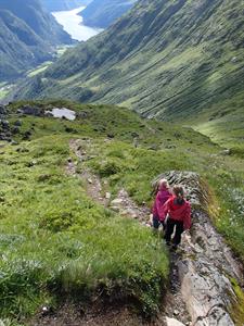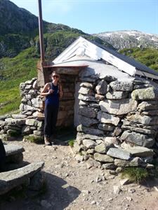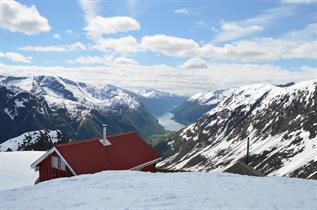 Plassert 1000 m.o.h., med storslegen utsikt. Flott vandring til hytta, ca 2-3 timer å gå. Ein kjem tett innpå det stupbratte brefallet, omlag 800 m.o.h.
