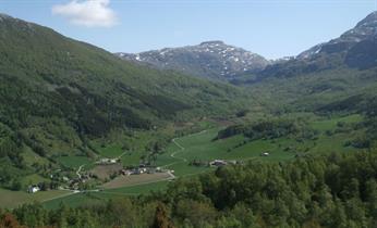 Ein enkel tur på traktorveg og sti med flott utsikt mot Krossdalen og Folgefonna.