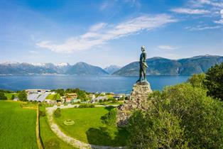 Liten, idyllisk park med fantastisk utsikt over Sognefjorden og med statue av Fridtjov den frøkne!