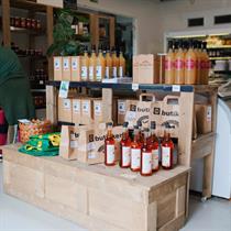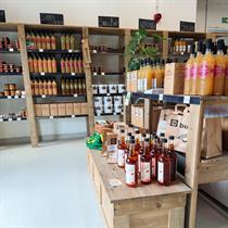 I gardsmatbutikken i Øystese sentrum får du kjøpt varer laga både av lokale og andre norske små og mellomstore produsentar. Her er det mellom anna tradisjonsbakst, fruktsaft, sider, syltetøy, honning, kjøt- og spekemat i hyllene.