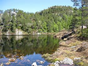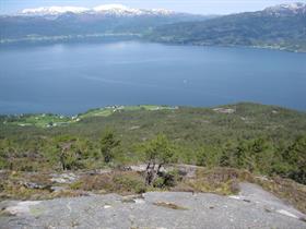 Tur i skogsterreng og fjellterreng til stølen Grønrimb med flott fjordutsikt.