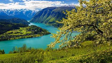 Opplev vakkert landskap med utsikt til majestetiske fjell, brølende fossefall og idylliske fruktgårder på turen Hardanger i et Nøtteskall.