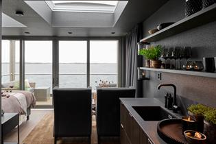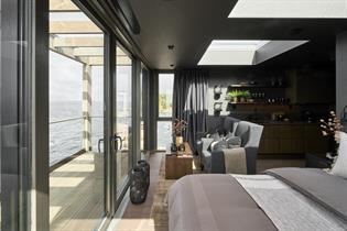 På Hideaway Herdla utenfor Bergen kan du overnatte i luksuriøse fjordsuiter 15 m over havet. Her ligger to separate fjordsuiter med plass til to gjester i hver suite.