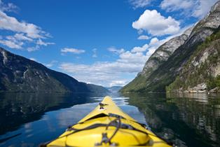 Undredal Bryggje Restaurant har utleige av kajakk og båt der du kan oppleve Aurlandsfjorden på eiga hand.
