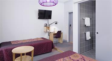 Dobbeltrommene på Klosterhagen Hotell har en moderne innredning med eget bad. Inkludert i romprisen er trådløst internett til fritt bruk og kabel-TV.