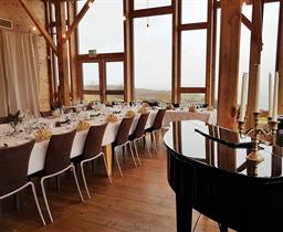• Ved matservering kan det dekkes til 80 personar på langbord