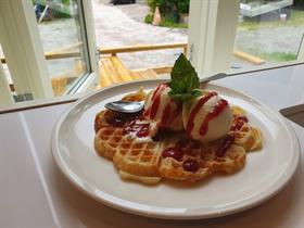 På Malena Kafè servera dei Pizza, Ciabatta, Lasagne, Panini, Hamburger, Raspeballer og dagens meny.