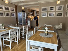 Vi kan imøtekomme 12 personer med en 3-retters meny. Dette kan forhåndsbestilles under "Reservasjon".