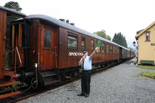 Ta en reise tilbake i tid ombord i vakkert restaurerte jernbanevogner i teak, trukket av et ekte damplokomotiv, turen går mellom Garnes og Midttun stasjon.