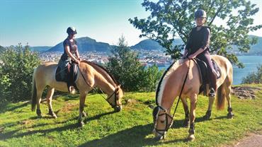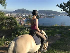 Opplev en unik ridetur på byfjellene i Bergen. Turen starter på Øvre-Eide Gård - som ligger kun 5 minutter med bil fra Bergen sentrum.Våre fire hester, Tia, Lilly, Rosa og Lunar er klassiske norske raser; Fjordinger og Dølahester. De er klare til å ta deg med på en uforglemmelig tur, hvor du kan nyte storslått utsikt fra steder som Fløyen og Sandviksbatteriet. Dette er en fantastisk mulighet til å se en annen side av Bergen, langt fra de typiske turistfellene. Du får oppleve harmonisk natur; elver, vann, skog og deilig, frisk fjelluft!