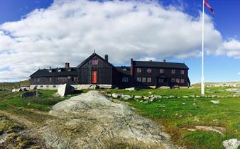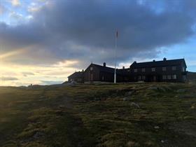 Sandhaug Turisthytte ligg ved Nordmannslågen midt på Hardangervidda. Frå Tinnhølen reknar me 3 til 3,5 t gange i lett turterreng.