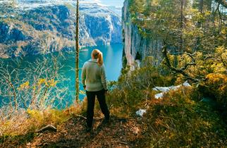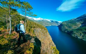 Stien starter fra hovedveien i Stokkeviki og følger elva et stykke. Kort etter at du har krysset elven, møter du et stiskille. Til høyre kommer du inn i Hestabotn, som er et naturreservat der det vokser barlind. Stien til venstre går videre til Slottet og er småkupert med lett stigning og litt steinur. Når du nærmer deg Slottet, får du utsikt til klippeformasjonen fra siden. På topplatået finner du toppvarden og en turkasse med bok du kan legge igjen en hilsen i. Platået er bredt, og du har flere flotte utsiktspunkt innover og utover fjorden. Hvorfor ikke ta med hengekøye eller telt og oppleve soloppgangen fra Slottet?