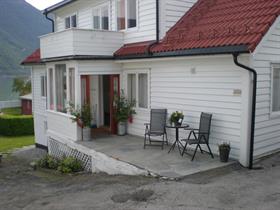 Sommarhus i Marifjøra - Luster! Huset har flott utsikt mot Lustrafjorden, fjella omkring og Jostedalsbreen i det fjerne.