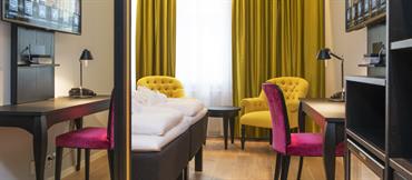 Våre standardrom for en eller to personer enten en twin-seng, to twin-senger eller en queen-seng. Alle standardrom har tilgang til minibar, kabel-TV, arbeidspult og internett.