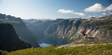 Trolltunga er den mest spektakulære fjellformasjonen i Noreg. Den ligg 1180 moh, om lag 700 meter over Ringedalsvatnet. Her er det fantastisk og luftig utsikt. Turen til Trolltunga startar i Skjeggedal og går i høgfjellet.