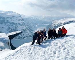 Bli med på et vakkert vintereventyr til Trolltunga. Turen til Trolltunga byr på spektakulær natur med utsikt over fjell, fjorder, dype daler, fosser og isbreer.