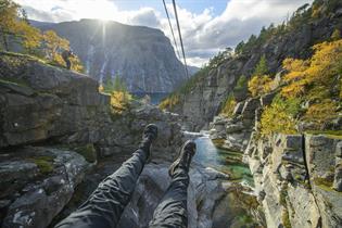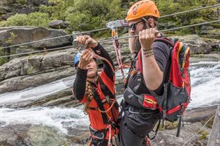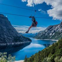 Trolltunga Zipline frå Trolltunga Active er ei spektakulær naturoppleving der du svevar over dramatiske juv, bratte fjell og buldrande fossar i landskapet rundt Ringedalsvatnet.