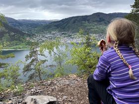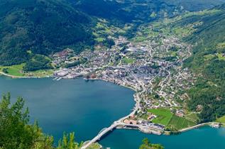 Storslått utsikt frå Hesteggi til Sogndal og utover Sogndalsfjorden til Fimreite